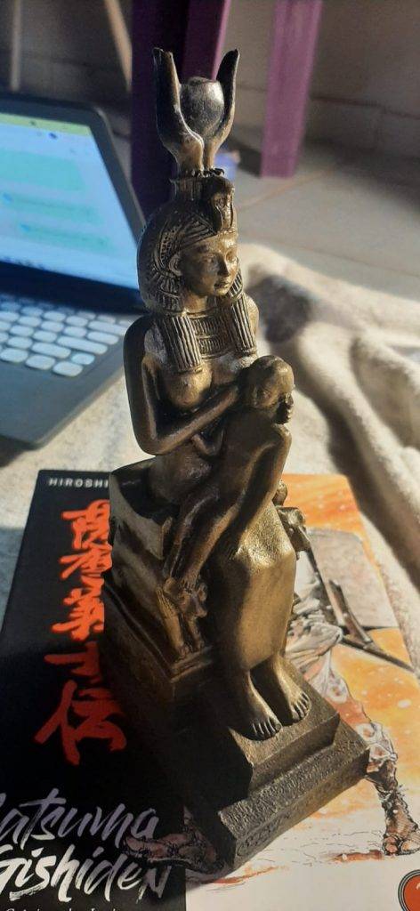 E o que fazemos com recém nascidos? Cuidamos, nutrimos. Aqui entra a imagem pagã, também copiada pelo cristianismo, da eterna criança simbólica que podemos ser, depois de morrer. Somos Hórus, no colo da feiticeira Ísis, nossa mãe. Vocês conhecem essa imagem da mitologia egípcia, que muito influenciou em como os artistas renascentistas pintaram o natal cristão da Virgem e do menino Jesus?