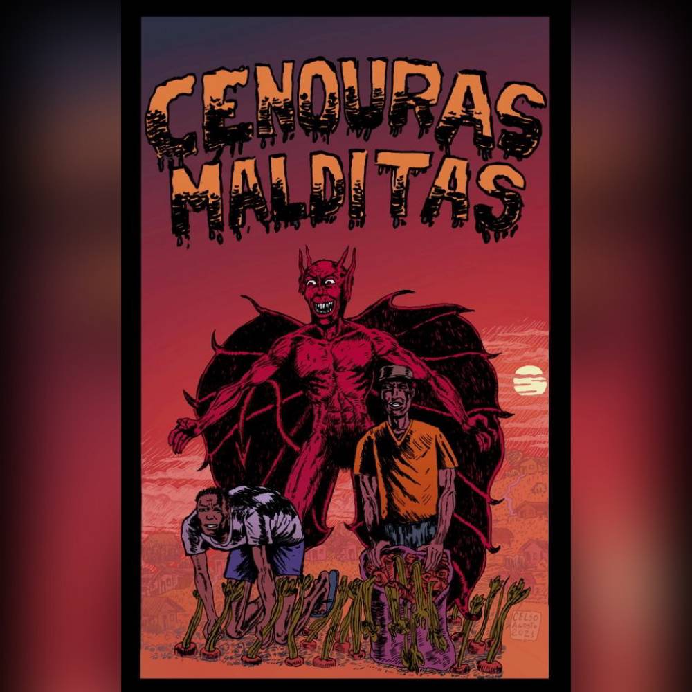 Luis é dono de um traço popular, de massa, de grande alcance, simples, mas com uma técnica forte de hachura. Não é um desenho acadêmico, no sentido de que Luis Celso é um autodidata e faz quadrinhos apenas pare se divertir, meio como hobby, meio como terapia. Uma das suas pérolas chama-se: “Cenouras Malditas”. Reparem no título! Isso é ou não o melhor do trash que um quadrinho pode oferecer logo de cara?