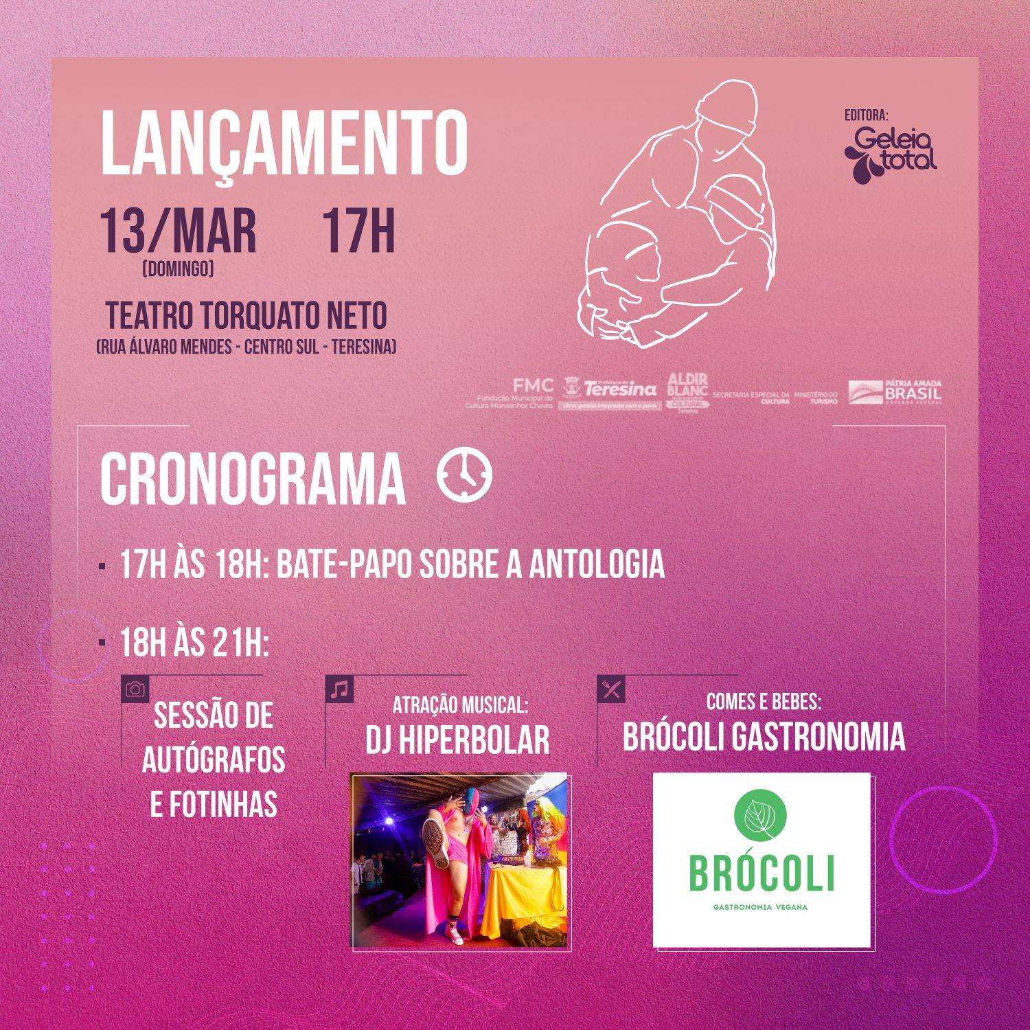 A programação do lançamento começa às 17h com um bate-papo sobre a antologia, moderada por Ayra Dias, com Alisson Carvalho, Paulo Narley e Miguel Cardoso, advogado e componente da Comissão da Diversidade Sexual da OAB-PI, que trará uma visão importante sobre Direito da Família. E logo após o bate-papo segue a programação para quem tiver interesse em adquirir o livro, conseguir autógrafos com todes que participaram da antologia, ao som do DJ Hiperbolar. “Nossas famílias” está sendo lançada pela editora da Geleia Total, e conta com o apoio cultural da Fundação Municipal de Cultura Monsenhor Chaves, por meio da Lei Aldir Blanc.