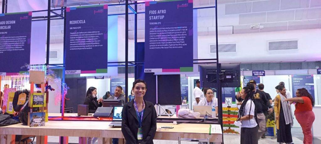 Além de expor a Fios Afro, a jovem empreendedora aproveita a feira para fazer networking, participar de memórias, assistir a palestras, conhecer iniciativas semelhantes à sua e ampliar sua rede de contatos.
