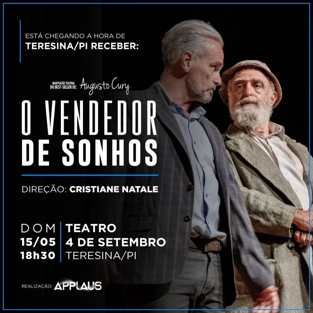Emoção, reflexão, questionamentos, relações humanas, conflitos, risos e transformação são alguns dos elementos que estão emocionando o público no espetáculo “O Vendedor de Sonhos” que está em turnê há mais de 4 anos pelos palcos do Brasil. A peça será apresentada no Theatro 4 de Setembro, em Teresina-PI, no dia 15 de maio às 18:30.