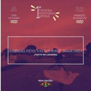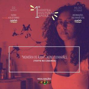 O evento ocorrerá no dia 22 de maio, a partir das 16:30, no Teatro 4 de Setembro e contará com 3 atrações artísticas: A multiartista Aline Guimarães com a performance “Memória d’água”; A bailarina/pesquisadora das danças-afro brasileira Samara Camila com a performance poética denominada “A volta ao mundo” e por fim o espetáculo “Dai-me licença”, uma produção do Grupo Afoxá.