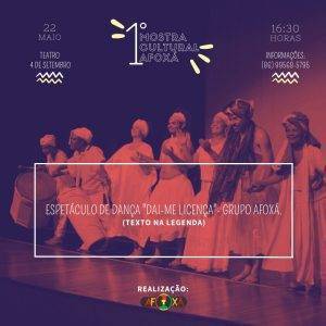 O espetáculo “Dai-me licença”, surge como proposta de produção, do Grupo Afoxá para o ano de 2022. A proposta inicial do espetáculo, conta com a junção de dança, música e teatro, fazendo um Mix de expressões artísticas, como já é de costume nas produções do Grupo. O nome “Daime-licença”, traz a energia do respeito aos ancestrais mateirais e imateriais (forças da natureza), ao reverencia-los e pedir licença ao povo presente “para mostrar a que viemos”. Partindo desse pedir licença, a produção faz uma narrativa passando por diversos elementos da cultura afrobrasileira. “Utilizamos ervas, velas e bênçãos, como elementos de saudação. Saudamos aos que se foram, saudamos a nós e saudamos a vocês”. Licença ao povo das matas, licença ao povo de Angola. E MO RI O (eu te vejo) e te saúdo.