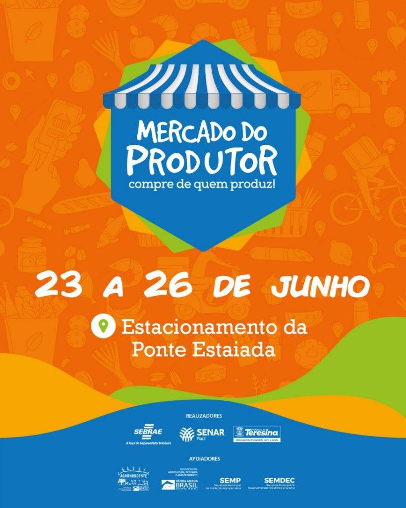 O Mercado do Produtor acontecerá no estacionamento da Ponte Estaiada, na zona leste de Teresina, de 23 a 26 de junho.