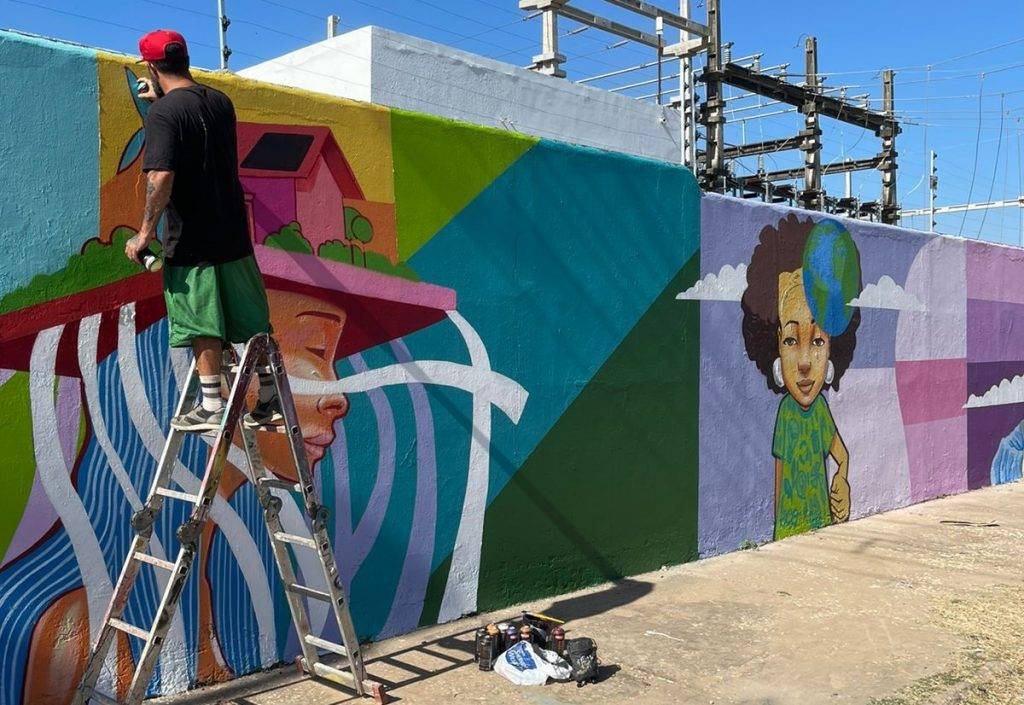 Buscando chamar atenção para práticas sustentáveis relacionadas ao descarte de resíduos sólidos, a Equatorial Piauí em parceria com a Prefeitura de Teresina, por meio da Secretaria de Desenvolvimento Urbano e Habitação (SEMDUH), promoveu uma exposição a céu aberto nos muros da Subestação Macaúba. O grafiteiro Washington Gabriel – WG foi o artista convidado para realizar a intervenção.