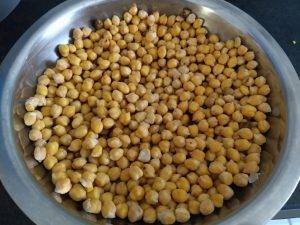 Primeiro, você precisa deixar 2 xícaras de grão-de-bico de molho em água filtrada, por pelo menos 8 horas. A ideia aqui é deixá-lo mole, mas não esmagável, caso fosse cozido.