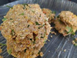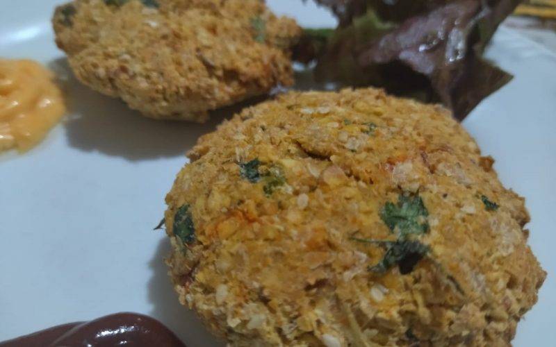 Eu deixei 30 minutos na geladeira, para garantir que eles não iam se desfazer. Após esse tempo, coloquei na air fry por 20 minutos à 200º. Mas, você pode usar a boa e velha frigideira, regada com um fio de azeite. Prontos, ficaram perfeitos. Firmes, mas macios por dentro.