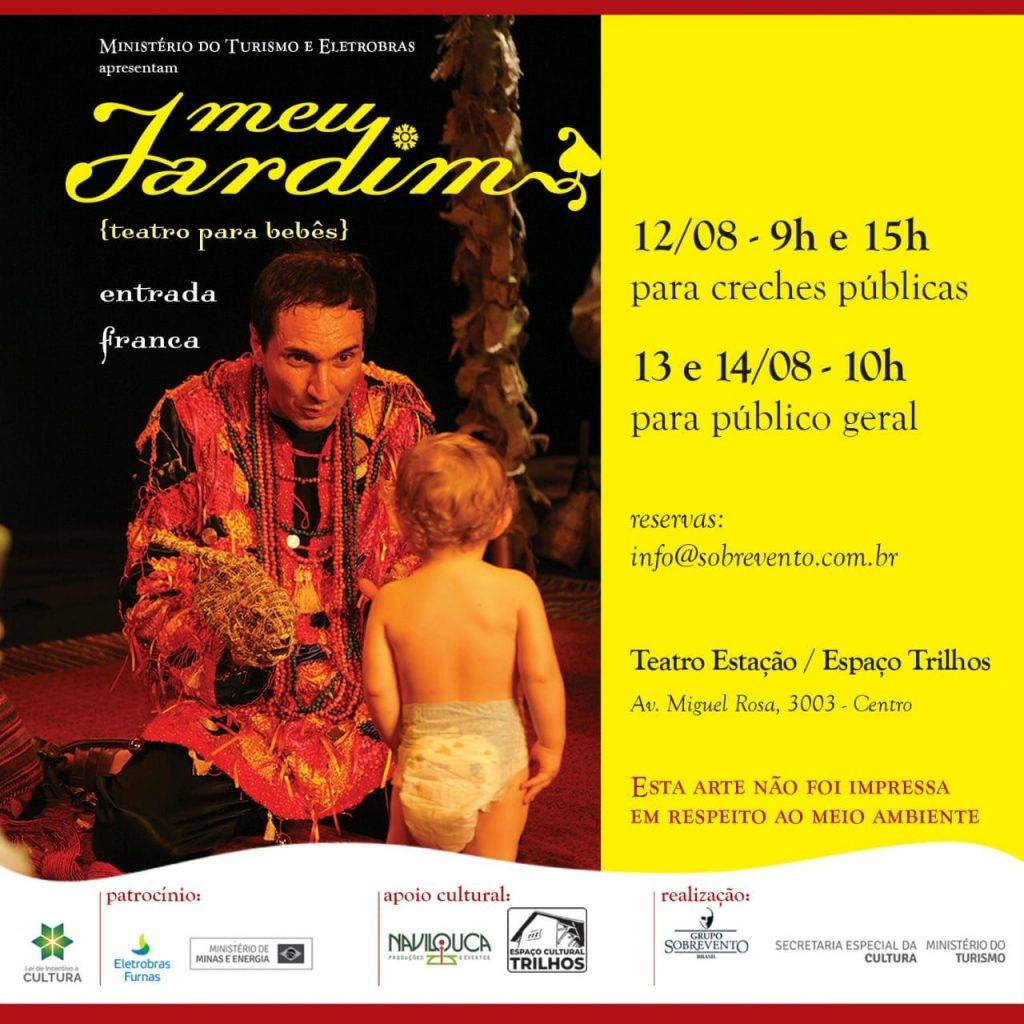 O Grupo Sobrevento, companhia de teatro paulista que completa 35 anos, chega nesta quarta-feira (11) em Teresina para dois espetáculos voltados para crianças de 03 meses a 03 anos de idade, no Teatro Estação, no Espaço Cultural Trilhos. “Meu Jardim” é o nome da atração inédita no Piauí. A peça foi levada para vários países e estados no Brasil. O Sobrevento é pioneiro no teatro voltado para crianças da primeira infância. O grupo tem um trabalho de longa data com o Teatro de Animação tendo circulado por muitos lugares dentro e fora do Brasil.