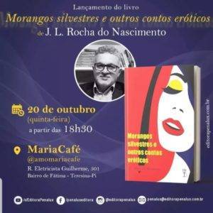 No dia 20 de outubro (quinta-feira) João Luiz Rocha do Nascimento fará o lançamento do livro “Morangos silvestres e outros contos eróticos” no espaço Maria Café, em Teresina-Pi, a partir das 18:30h. A obra já está em regime de pré-venda e pode ser adquirida no site da Editora Penalux ou com o próprio autor.
