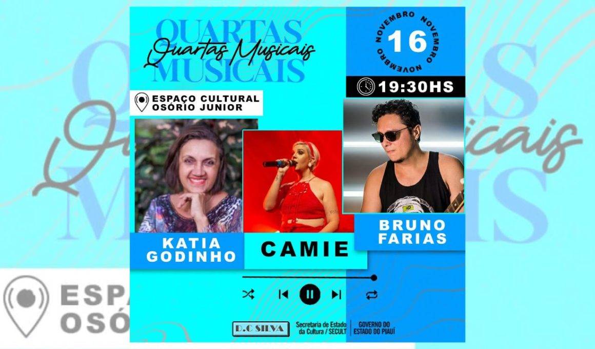 Convoque a turma, porque nesta quarta quarta-feira, 16, o projeto Quartas Musicais levará o som de Bruno Farias, Camie e Kátia Godinho ao espaço cultural Osório Júnior, no Clube dos Diários e começa às 19h30. Participação especial de Jairo Mouzzez, músico da banda Kandover e compositor.