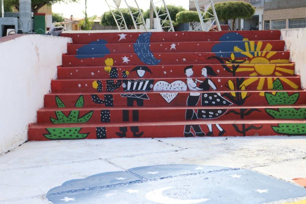 A ação durou seis dias e ao todo foram pintados mais de 100 metros envolvendo murais e escadarias. Segundo a artista, os murais ocuparam quatro muros, cada um medindo 24 metros. Um trabalho árduo que contou com a colaboração dos alunos das oficinas que hoje se orgulham de fazer parte dessa grande homenagem à Santa Rosa do Piauí.