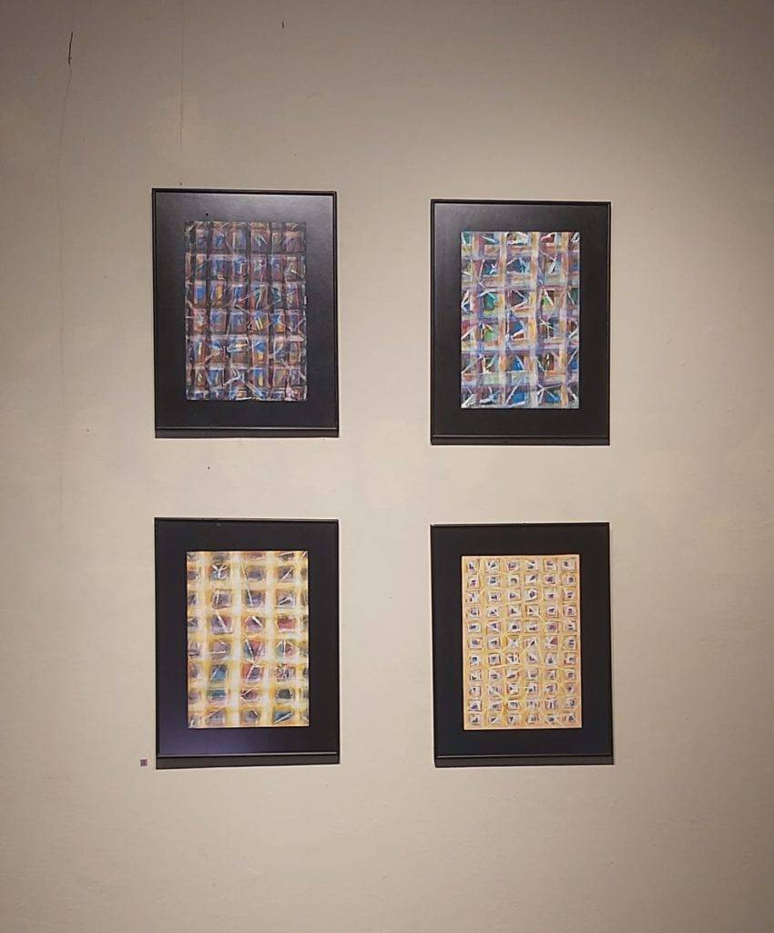 “Essas obras fazem parte de uma série maior, e que ainda continua em expansão, que são abstratos. Os quadros foram realizados de forma intuitiva, com abstrações com o intuito de experimentação de materiais. Todas as obras são de técnica mista sobre o papel. E que a ideia é exatamente trazer essas possibilidades de utilização de itens, de recursos, de materiais, sobreposição deles, para verificar o resultado. Como eu gosto muito de formas geométricas, são abstrações com o mote geométrico com sobreposição de cores diversas, inclusive contrastante”, completa.