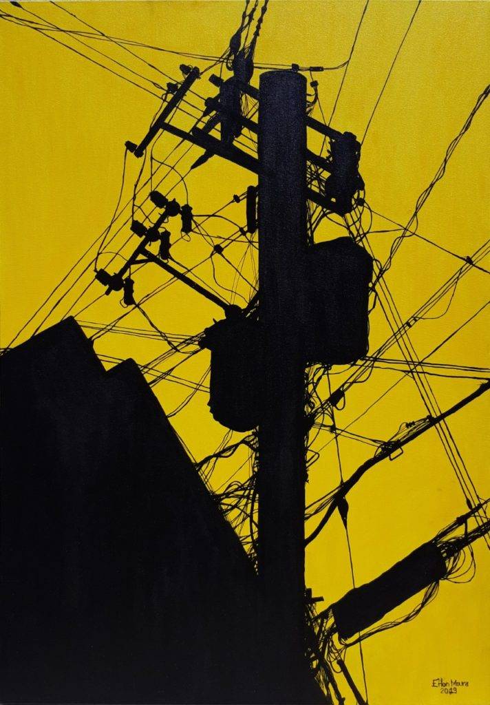 As obras que Erlon escolheu possuem uma temática urbana com postes, fios, construções. Seu intuito foi criar um paralelo entre o emaranhado de fios com as conexões/movimentações entres as pessoas do centro de Teresina e criar o “caos urbano”.