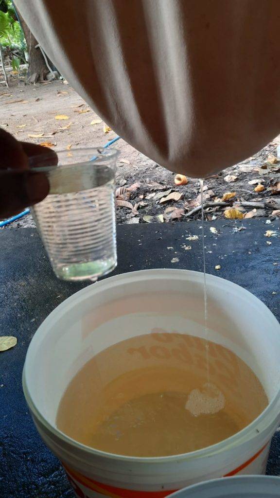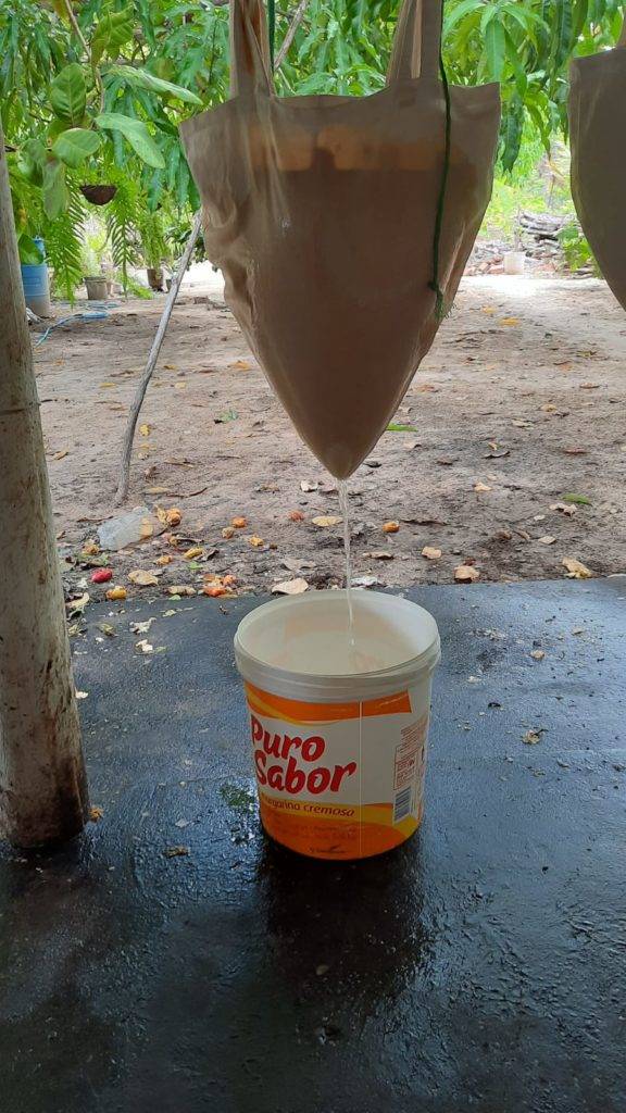 5) Depois, o produto é filtrado para separar o líquido do bagaço;