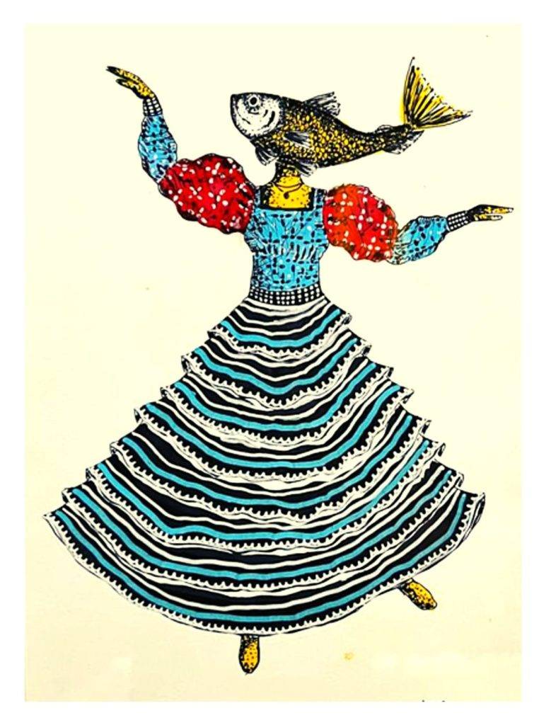 Acho lindo quando o santo lhe pega, porque a música para e, em círculo, todo mundo escuta as respirações dela, rápidas e superficiais. Os batuques do seu coração. E ela gira e gira. “Deu meia noite, o galo já cantou, lá na encruzilhada”, canta uma das presentes. E ela é jogada ao chão como uma pena. É um cair estético, calculado. Uma dança. Cai de joelhos. Estufa os seios e o tronco em direção ao céu, à lua cheia. À rasga-mortalha que pia lá no alto da mangueira. Segura a saia com as duas mãos. Coxas à mostra. É quando a Cigana nela gargalha. Um “quiá quiá quiá” que corta a noite, produzindo silêncio na mata ao redor.
