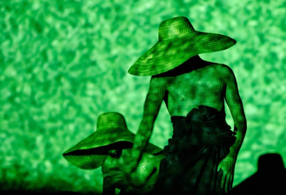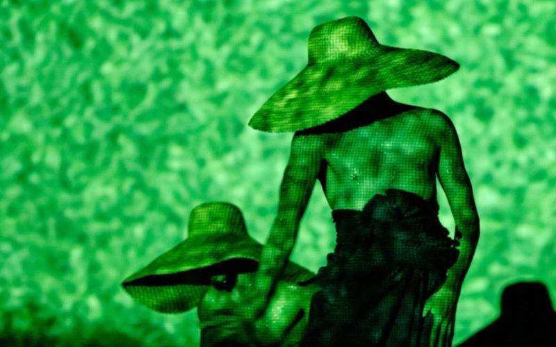 Os elementos que compõem o espetáculo são construídos de um modo que conectem todas essas relações, desde a trilha sonora que traz junto a seus tambores tanto a cultura nordestina quanto o imaginário dos samurais. No figurino, também há elementos nordestinos (e piauienses): o grande chapéu de palha que protege do sol; a rede que utilizamos para descansar e que aqui é resignificado para construir esse figurino.