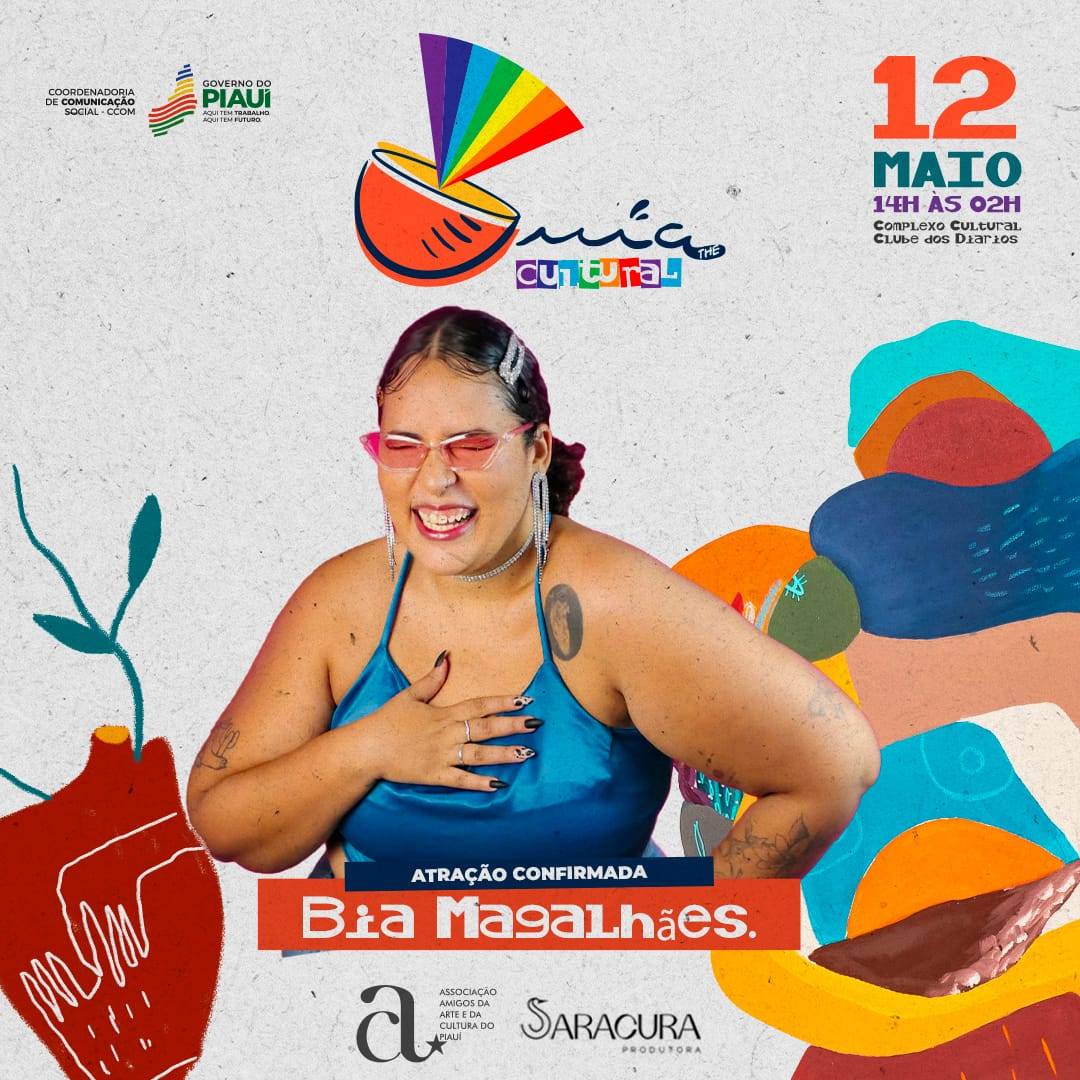 Bia Magalhães (@biamagalhae.s) é atriz, cantora, compositora, diretora e roteirista. É mais uma atração da segunda edição do Cuia Cultural. Dona de um carisma único e vocais bem aveludados e potentes, promete entregar o conceito, a coesão e a aclamação de sempre no Palco Osório Jr.