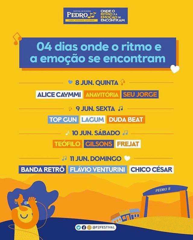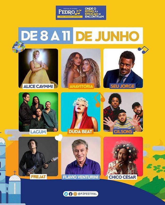 - Quinta-feira – 8 de junho: Alice Caymmi – Anavitória – Seu Jorge