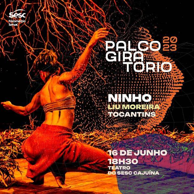 Comemorando 25 anos de projeto, o Palco Giratório marca o retorno das atividades presenciais com a apresentação do espetáculo Ninho da artista Liu Moreira (TO) no dia 16/06, às 16:30 no teatro do Sesc Cajuína. O projeto foi interrompido em 2020, em decorrência da pandemia, mas posteriormente se manteve de maneira virtual com apresentações on-line durante os anos de 2021 e 2022. A entrada é o ingresso solidário (1 kg de alimento não perecível).
