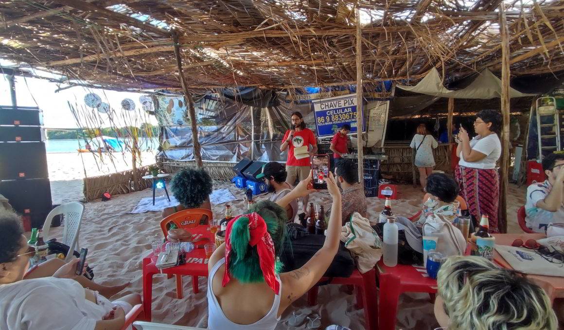 As poetas e os poetas só podiam estar em estado de exercer suas potências. O palco era apenas um lençol estendido sobre a areia, que poetas ampliaram, sem limites, isto é, o limite era a própria areia e a vontade de abrir o coração e a boca e soltar a voz tão necessária como a água que bebemos, ou bebíamos, desse rio.