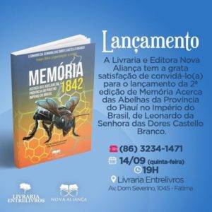 Não é objetivo deste texto analisar a poesia leonardina. Os parágrafos anteriores servem apenas para situar a primeira edição em livro da Memória Acerca das Abelhas da Província do Piauí no Império do Brasil, de autoria de Leonardo da Senhora das Dores Castello-Branco, a ser lançada no próximo dia 14 de setembro, na Livraria Entrelivros, em Teresina, com o selo da Nova Aliança Editora.