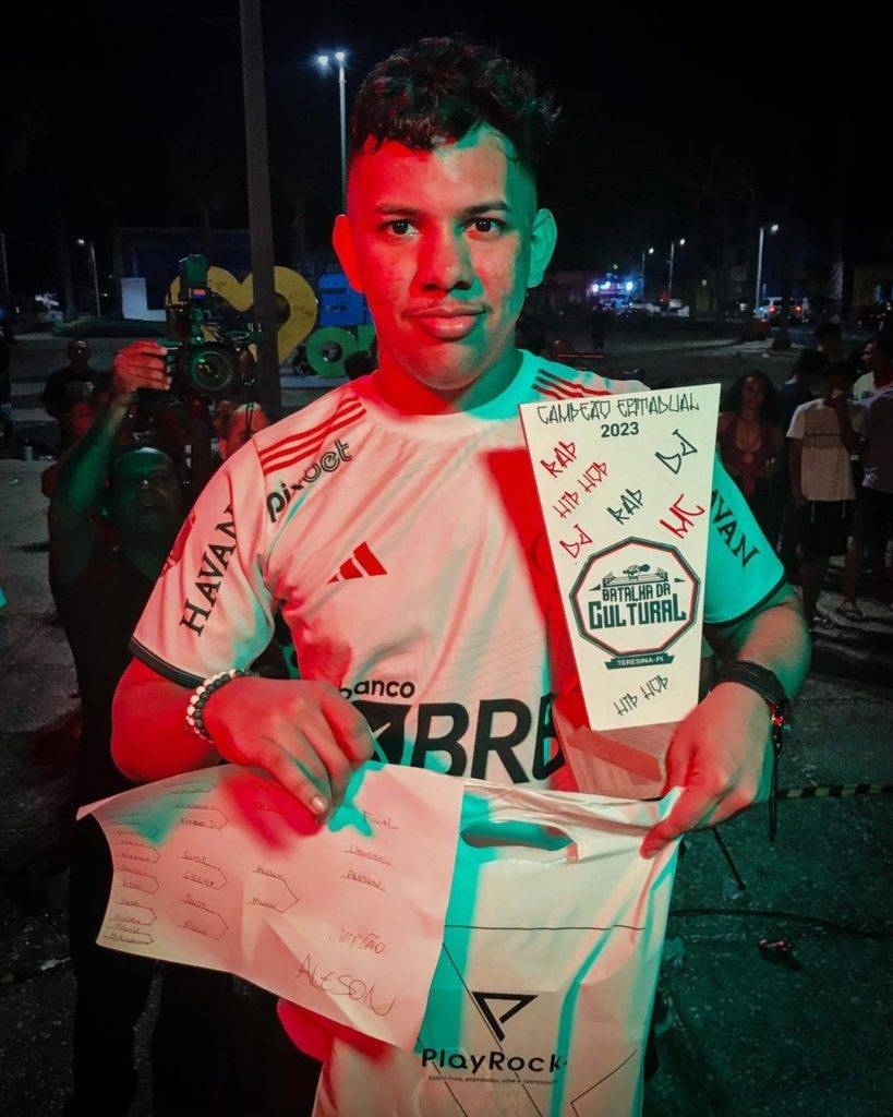 A poesia ritmada feita no improviso e materializada de forma oral é a principal ferramenta de expressão do artista Aleson Aguiar que é natural de Parnaíba e com apenas 22 anos de idade já participou de muitas competições como o Torneio do Poder, Litoral Style, Batalha dos Crias de Parnaíba, além disso foi campeão regional 4 vezes em Parnaíba e acumula muitas outras vitórias.