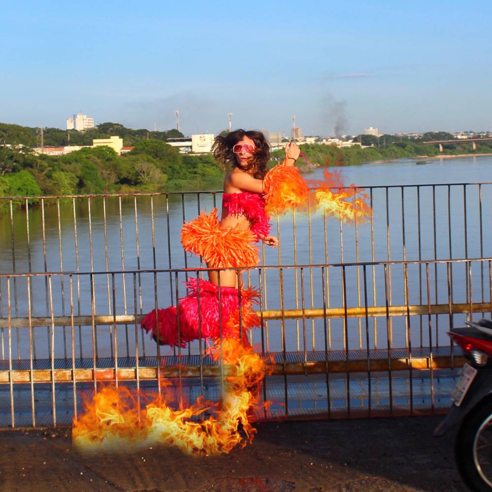 Literalmente correndo com uma roupa performática na estética da capa, LEVITA retorna à Teresina para fotografar essa “fuga” na ponte metálica, a qual liga o Piauí ao Maranhão e referencia o intercâmbio Teresina-Salvador no qual a artista vive.