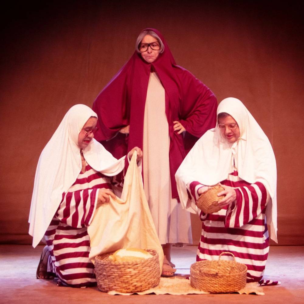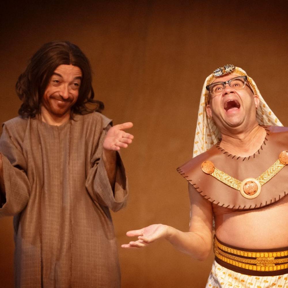 Com divertidas atuações, a peça traz a cena de quando Hermanoteu e Isaac, nos portões do Egito, anunciam o momento universalmente conhecido em que Moisés abre o Mar Vermelho.