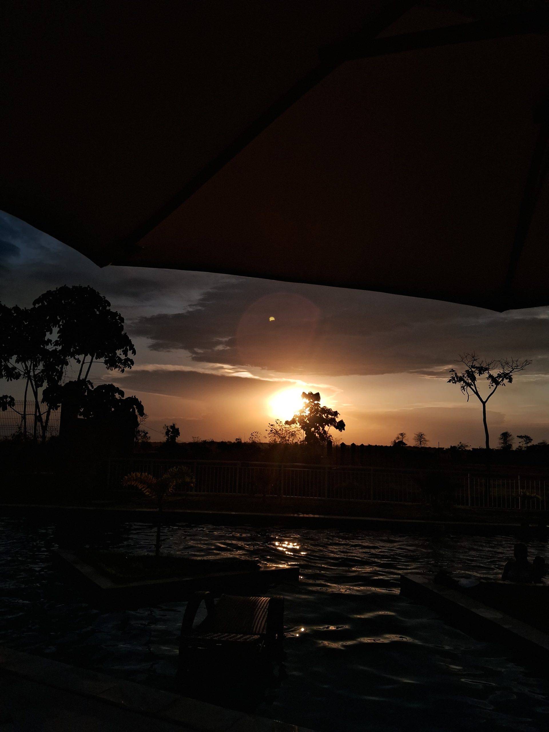 Não foi. Primeiro que nem foi possível visualizar como me iludi que seria. Esperei ao menos um pouco de escuridão e ganhei o de sempre: somente o sol. E tá de bom tamanho pois já estou acostumada com a sua presença escaldante. Não é nenhuma novidade. Ainda olhei pela janela, contrariando todas as recomendações para não expor a retina, mas sem sucesso.