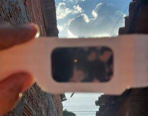Felizmente tenho uma irmã destemida para os assuntos siderais e a bonita comprou até “oclinhos” especiais para observar e fotografar o espetáculo.