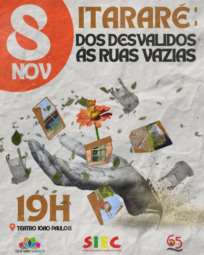 Hoje, dia 08/11 (quarta-feira), o coletivo de teatro Shangri-lá estreia o espetáculo teatral “Itararé dos desvalidos às ruas vazias” às 19h no teatro João Paulo II, localizado na av. Joaquim Nelson, Dirceu. A entrada é grátis e livre.