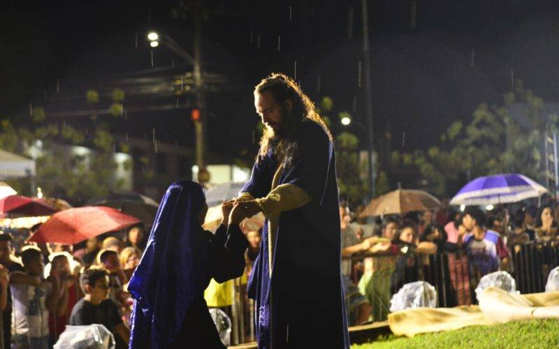 Dentro dessa produção o público poderá contar com atores do cenário nacional e local. Jesus Carvalho interpreta Jesus Cristo, com todo sentimento e emoção. No elenco nacional, Paulo Betti será Herodes. Dadá Coelho, atriz e humorista viverá a personagem Herodíades. Pedro Pauleey será o anjo Gabriel. Verônica será interpretada pela atriz e cantora Juliana Betti. Ainda no elenco nacional, Betto Marque viverá Pìlatos e vai contracenar com a jornalista Idria Portela, que será Cláudia, esposa de Pilatos. O profeta será interpretado pelo ator Roberto Rowntree. E a personagem de Salomé será interpretada pela miss Gabi Lacerda.