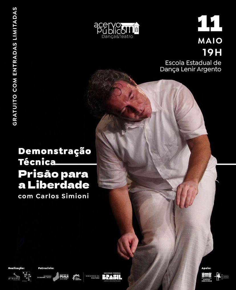 O mestre Carlos Simioni, um dos fundadores do LUME, apresenta hoje (11) às 19h “Prisão para a Liberdade” em Teresina, na Escola de Dança Estadual Lenir Argento, localizada no Centro de Artesanato. A apresentação faz parte do “Projeto Acervo Público”.