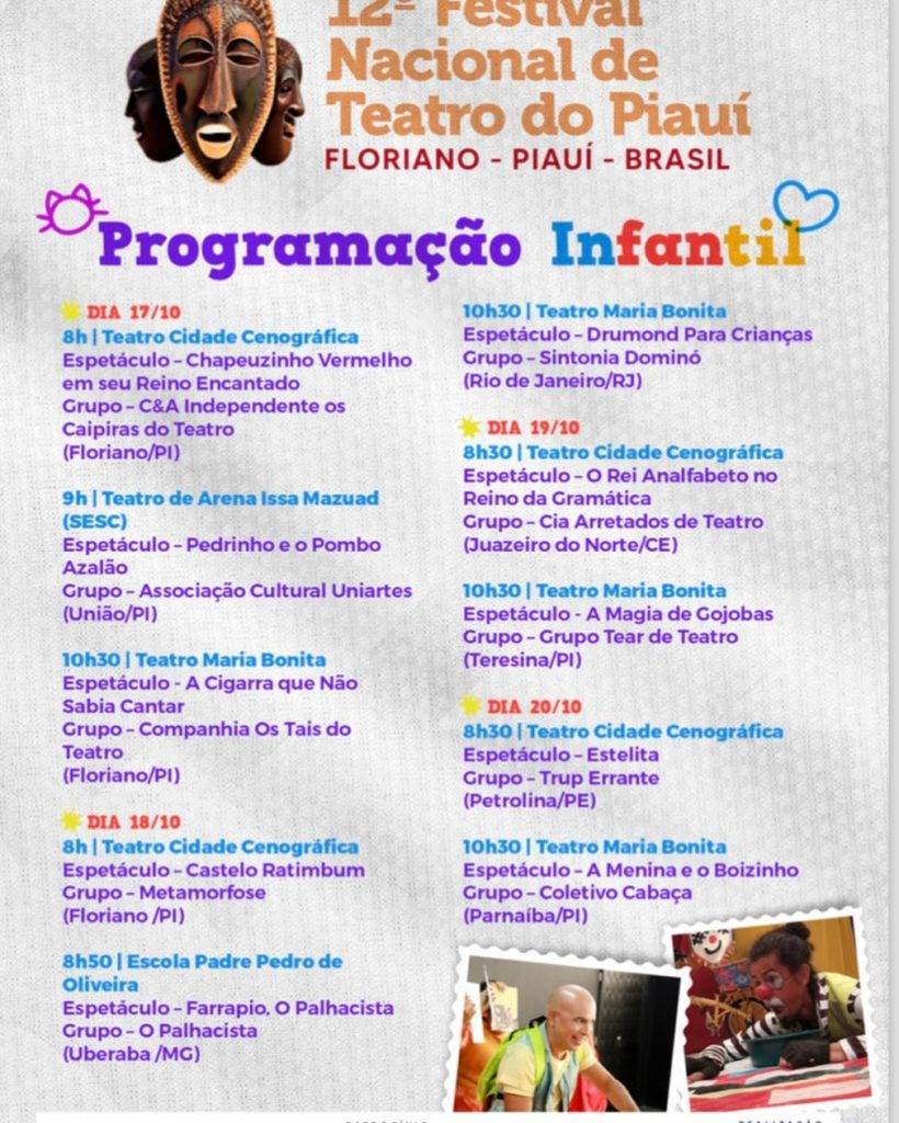 O 12º Festival Nacional de Teatro do Piauí de teatro de Floriano acontece até domingo (20) e reune grupos de vários estados, como São Paulo, Rio de Janeiro, Minas Gerais, Santa Catarina, Goiás, Pernambuco, Maranhão, Ceará e Piauí.