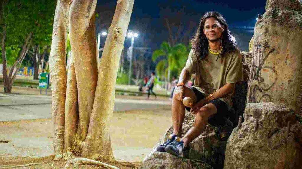 Thaín Wirá: Eu me chamo Thaín Wirá, eu sou um jovem indígena da etnia Baré, eu resido aqui em Teresina tem 7 anos, sou filho de um homem amazonense de São Gabriel da Cachoeira, ele é indígena da etnia Baré e minha mãe é uma mulher piauiense, nascida aqui em Teresina, lá no Monte Castelo. Eu passei a minha vida inteira no Norte do Brasil, lá no Amazonas, então resolvi vir à Teresina conhecer a cidade e a ancestralidade nordestina, por parte da minha mãe, e acabei me apaixonando pela cidade e estou aqui há 7 anos. Aqui na cidade eu desenvolvo a produção cultural com o Slam Nós Por Nós, o RetomARThe, sou poeta em retomada, poeta indígena, sou aluno da UESPI de Ciência Sociais, hoje eu também sou pesquisador da Fiocruz com a pesquisa com a saúde mental indígena lá em Piripiri e isso é um pouco de mim, um pouco das minhas facetas.