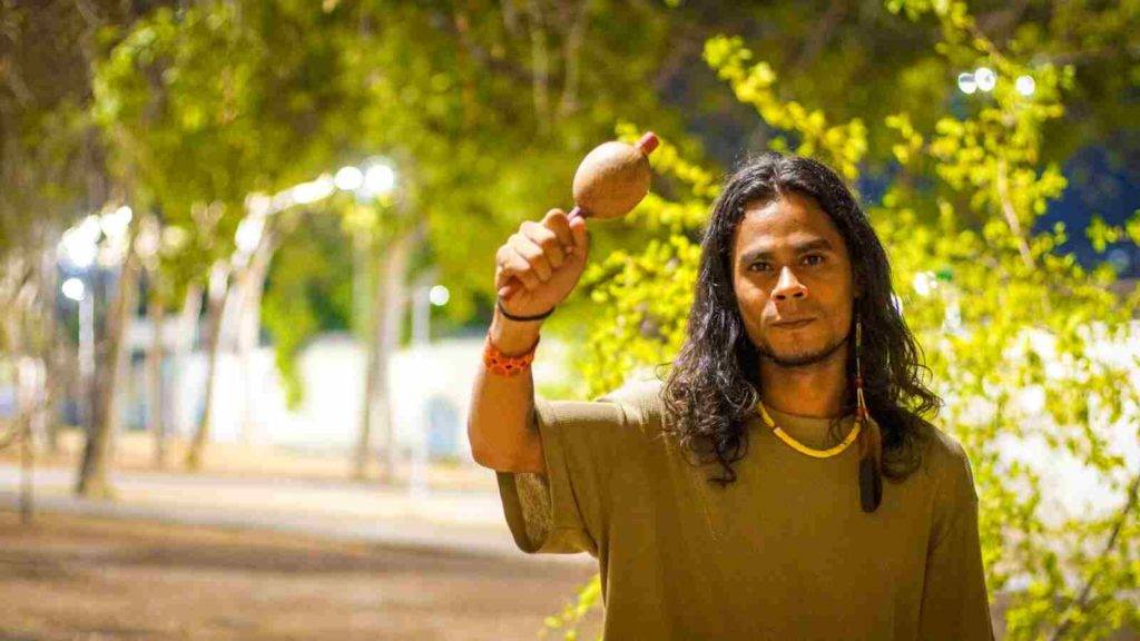 Foi todo um ritual, pois primeiro foi ser historiador. Minha família vem toda do militarismo e foi uma quebra familiar. Depois de 4 anos, cheguei em casa e disse que era artista — e fui bem aceito pela família. Mas eu sei que sou artista desde quando saí do ventre da minha mãe, fazendo os rituais familiares através da música e da oralidade. Acho que a tecnologia mais importante que ajuda a sobreviver dentro dos povos tradicionais é a oralidade, que permite que ainda estejamos aqui, que permite que as pessoas nos vejam, através da nossa oralidade, dizendo que ainda estamos aqui.