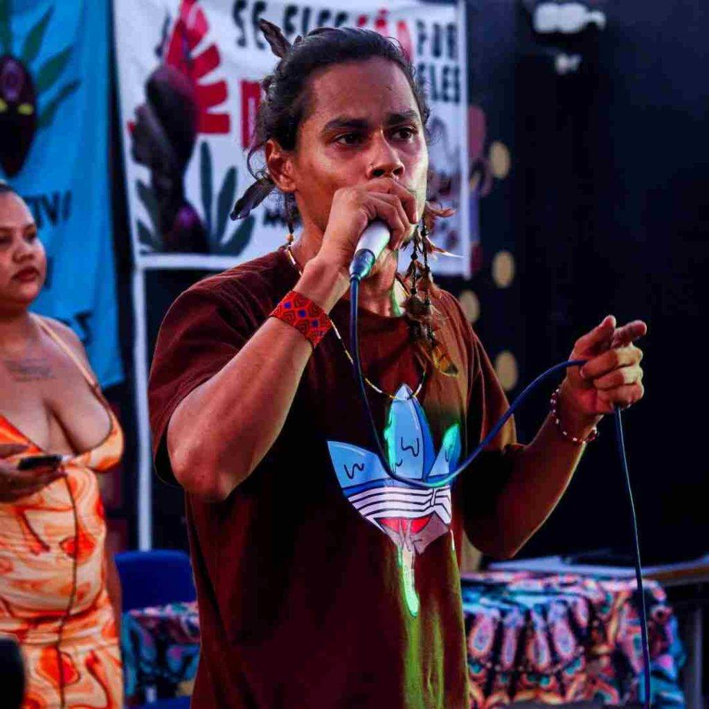 Desde muito pequeno, minha família inteira tem essa ligação, mas levando a arte como algo que faz parte da gente, sem a necessidade de um nome. Só estávamos lá, vivendo a nossa vida, e isso faz parte de mim em todos os momentos. Minha maior lembrança é mais com a música, nem tanto com a poesia, mas o lugar que mais me pegou — pois é o lugar onde posso falar dos meus, sobre as experiências que vivenciamos e sobre o que precisamos para retomar o território, a nossa cultura, o nosso bem viver — é a música.