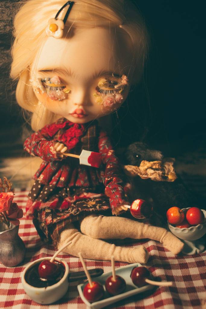 Germana Queiroz: Por conta do autismo, eu sinto uma dificuldade muito grande em lidar com pessoas. Então, como já falei, desde criança eu costumava criar histórias, muitas eram fanfics (risos) de Naruto no Orkut. Mas também escrevi várias histórias originais, que ficaram mais guardadas para mim. Quando eu comecei a fotografar, tentei primeiro com pessoas, mas não gostei do resultado, porque eu preferia as bonecas por elas serem minhas atrizes. É como se eu fosse Deus e elas seriam… minhas pequenas minions? (Risos). As bonecas me dão uma liberdade para trabalhar, o que as pessoas, em geral, não pensam tanto nisso, porque ao pensarmos em bonecas remetemos à ideia de algo estático. Mas não, elas são versáteis, principalmente as Blythe Dolls, elas têm um cabeção, pois dentro delas há um mecanismo que faz mudar o olho. Eu consigo alterar os olhos e só essa mudança no olhar, como também da luz nelas… Tudo isso gera uma mudança na dramatização da foto. Então, gosto muito de trabalhar com essa liberdade que as bonecas me trazem, elas não reclamam e são ótimas atrizes. Cada boneca conta uma história, tem um nome e trajetória, elas são o meu conduite para que essa história chegue ao meu observador.