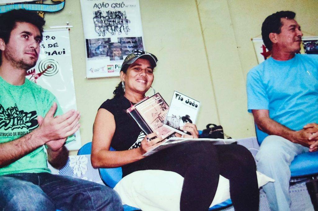Fafá Guimarães: A primeira proposta era a história da minha bisavó, mãe Cota, pois minha lembrança de infância era a da minha bisa, uma mulher cega, quebrando um quilo de coco babaçu. Ela botava todos os meninos e meninas na frente e contava histórias. Quando eu entrei na universidade fazendo o Enem aos 55 anos, me inscrevi na Educação do Campo/Ufpi, passei, estou neste espaço depois de 40 anos fora de sala de aula. Uma professora do curso me incentivou a pensar desde cedo no TCC, conversei com ela sobre de onde eu vinha, ela gostou, fizemos um texto científico. Quando eu trabalhava na Secretaria de Agricultura, vi uma moça cantando, perguntei quem era, “é Alice. Ela é filha de uma “quebradeira de coco”. O que me interessou foi que ela foi a primeira e única mulher no nordeste que se tornou vereadora de oposição em plena ditadura. Eu falei com a professora… nós já tínhamos o artigo pronto, mas contei para ela a história e embarcamos nisso. Fui