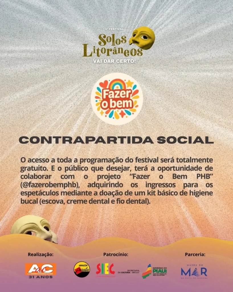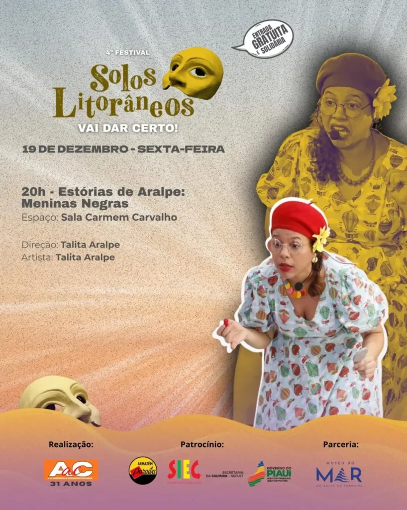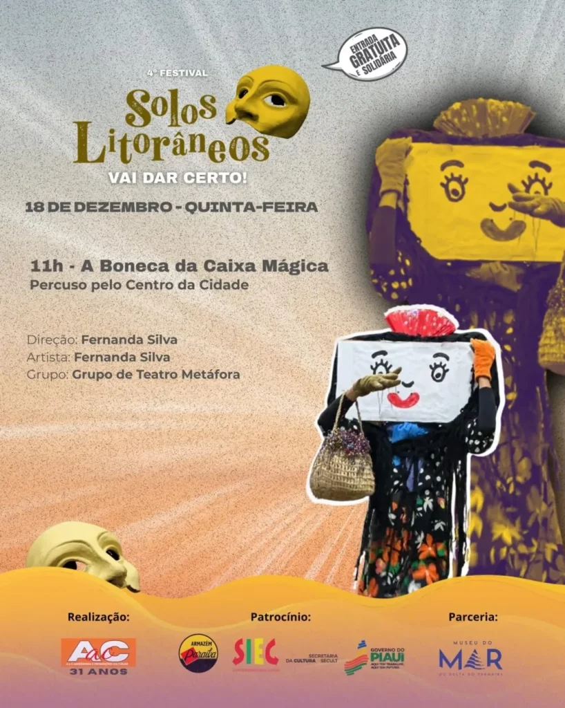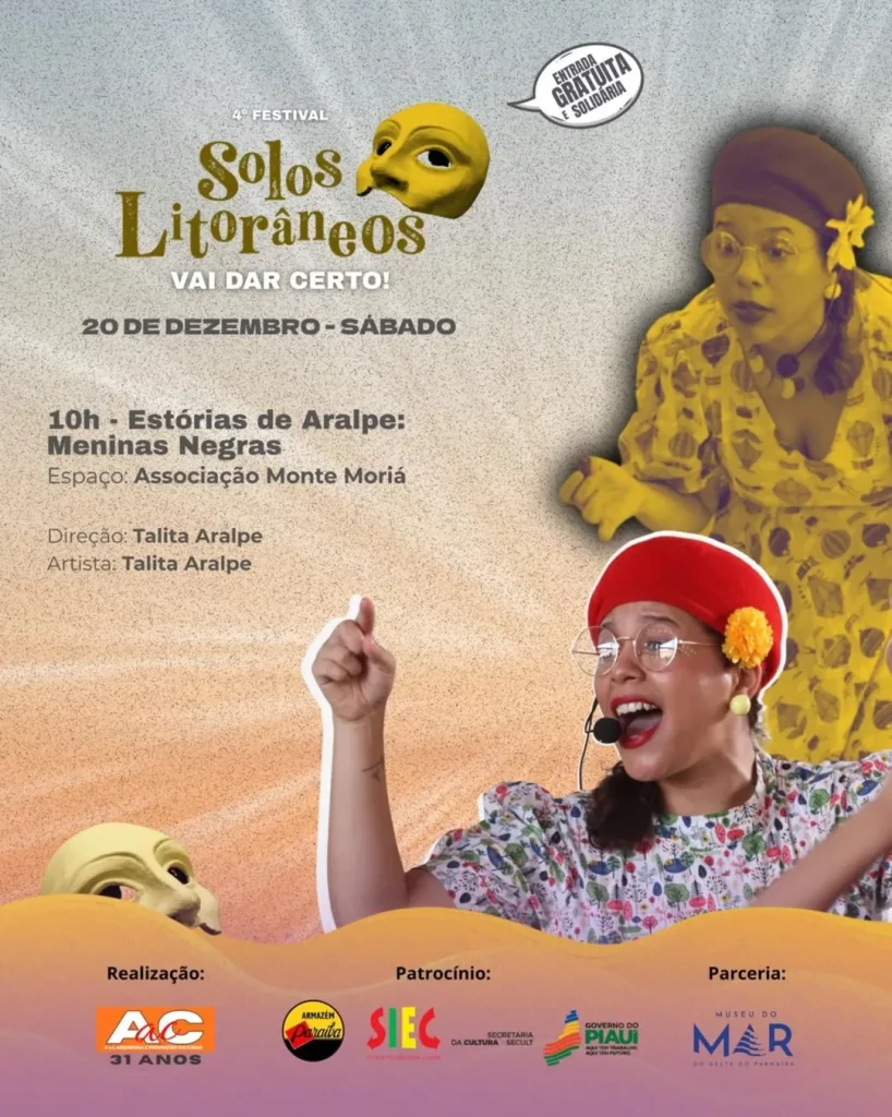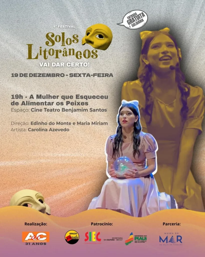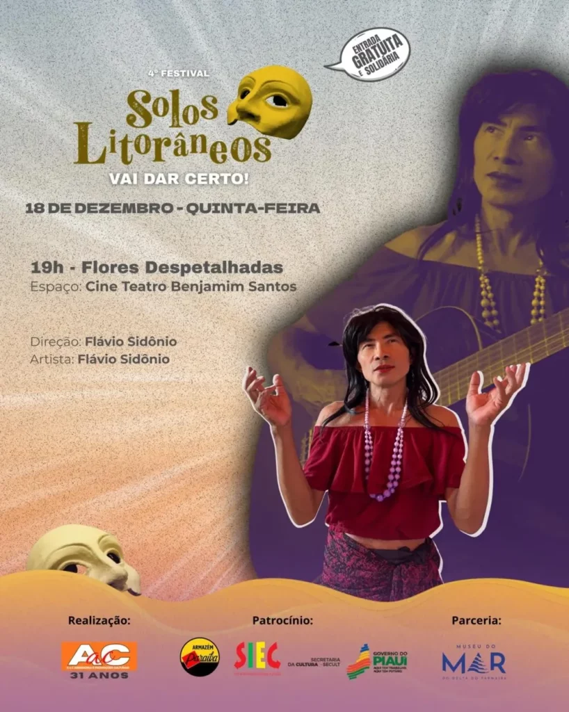 O 4º Festival Solos Litorâneos – Vai dar certo! divulgou sua programação completa. O festival, que acontece de 17 a 20 de dezembro, em Parnaíba (PI), promove uma maratona de espetáculos teatrais solo, performances e atividades formativas, todos com acesso gratuito. As apresentações ocorrerão em diversos espaços culturais da cidade, com o Museu do Mar como epicentro.