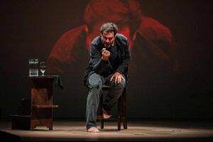 E o roteiro é dos bons: Hamlet, com a faca no pescoço do rei, prestes a matar e resolve abrir o jogo sobre todas as suas dúvidas. Ângelo, aquele juiz puritano, mostra a sua cara podre antes de assediar uma freira. Já Macbeth, rei assassino cercado por inimigos, se vê sozinho no palco pra escancarar o horror que sente de si mesmo. Thiago entrega esses momentos como quem convida o espectador pra um papo reto, sem paredes.