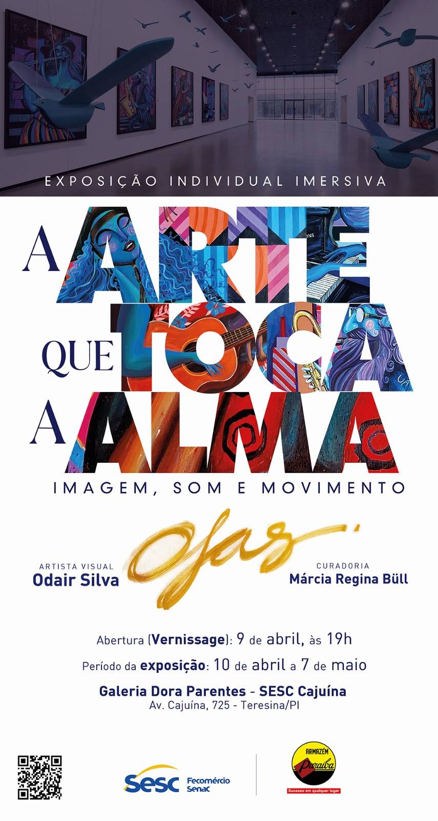 O artista visual, designer e cenógrafo OJAS (Odair Silva) apresenta sua primeira exposição imersiva individual.“A ARTE QUE TOCA A ALMA: SOM, IMAGEM E MOVIMENTO”, reúne pintura, instalação e tecnologia, convida à uma experiência sensorial que conecta arte, emoção e inovação. A mostra será realizada na Galeria Dora Parentes, espaço cultural do Serviço Social do Comércio – SESC Cajuína, em Teresina, de 10 de abril a 07 de maio.