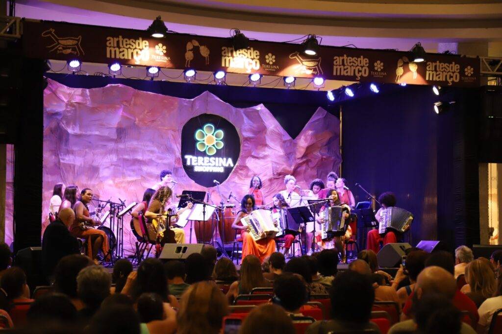 E se o assunto é o protagonismo feminino, não podemos deixar de destacar uma orquestra independente formada e mantida exclusivamente por mulheres. Atualmente composta por 19 musicistas, a Orquestra Rosa dos Ventos foi idealizada por Isabela do Kariri, Tauana Queiroz e Écore Nascimento em agosto de 2025, tendo sua primeira estreia no 47º Encontro Nacional de Folguedos do Piauí e, agora, no dia 9 de março fizeram parte da programação de abertura do Artes de Março, celebrando e valorizando a luta das mulheres na música e nas artes.