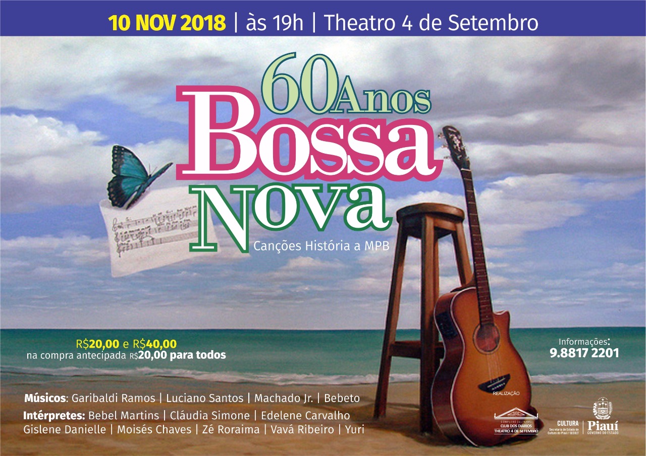 Dia 10 de novembro, no Theatro 4 de Setembro terá a comemoração de “60 anos de Bossa Nova”, a partir das 19hrs. Não fique de fora dessa!!!