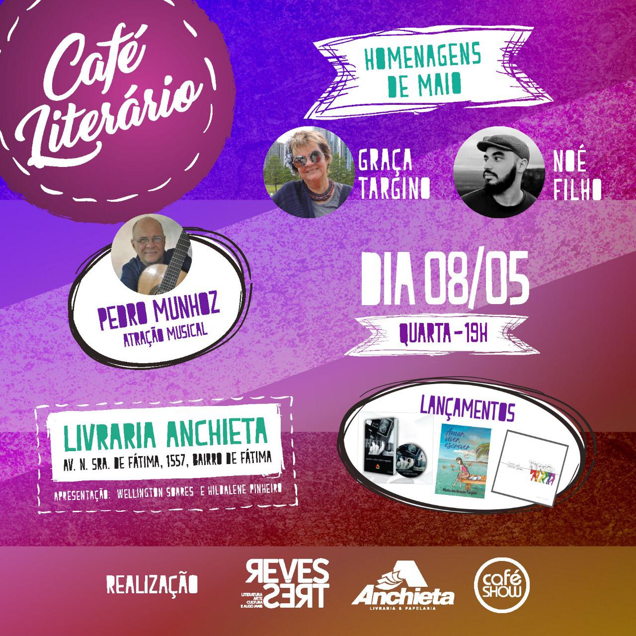 Hoje 08 de maio, às 19hrs, terá Café Literário na Livraria Anchieta, os homenageados de maio são: Graça Targino e Noé Filho. A música ficará por conta de Pedro Munhoz.