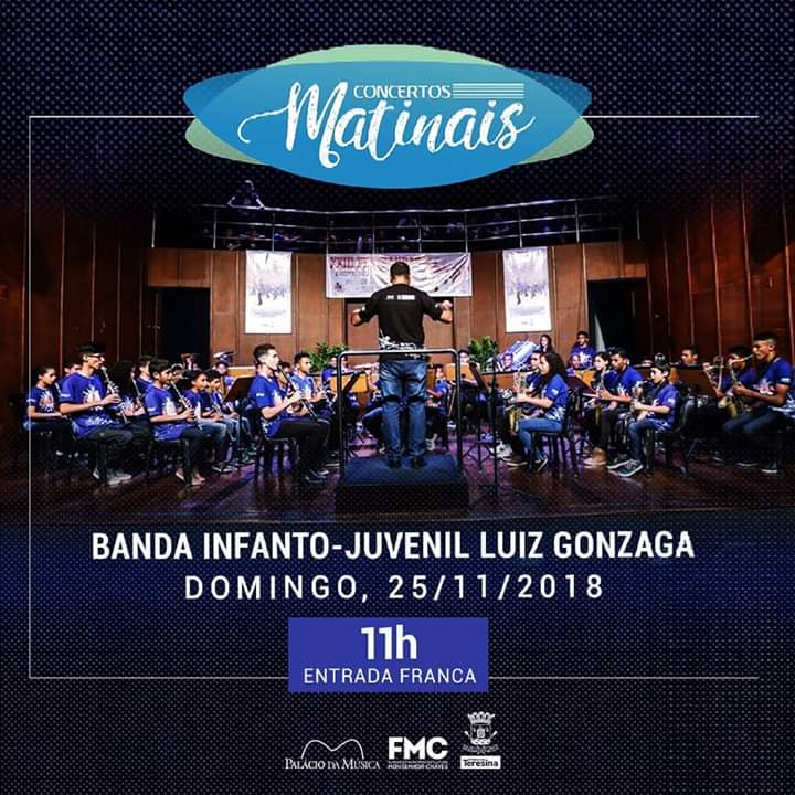 Domingo (25), a Banda infanto-juvenil Luiz Gonzaga, do bairro Mocambinho, uma das pioneiras do projeto Banda Escola, se apresenta nos Concertos Matinais do Palácio da Música de Teresina às 11hrs da manhã, com entrada franca.