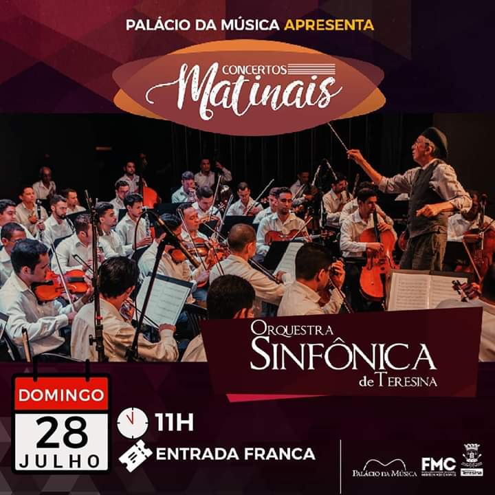 Hoje 28 de julho, a Orquestra Sinfônica de Teresina encerra a programação mensal do projeto Concertos Matinais do Palácio da Música, como de costume, às 11h, com entrada franca. Não fique de fora dessa!!!
