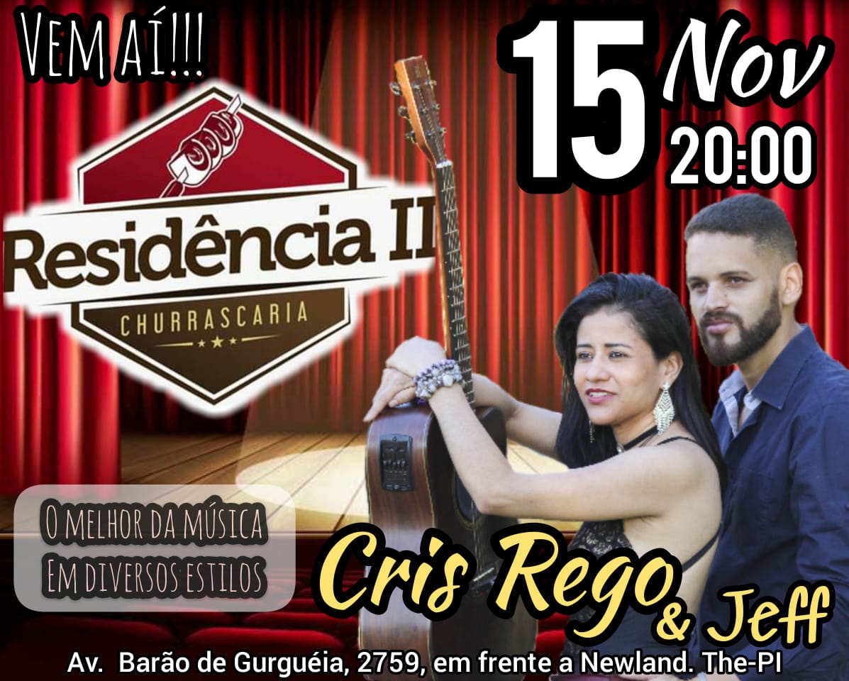 Amanhã, 15 de novembro, a partir das 20hrs, no Residêcia II terá Cris Rego e Jeff com o melhor da música pra você curtir.