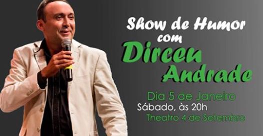 Dia 5 de janeiro, no Theatro 4 de Setembro a partir das 20hrs, Dirceu Andrade estará apresentando um show de humor. Não fique de fora dessa!!!