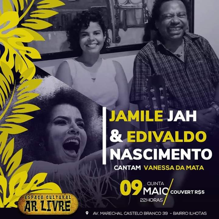 Hoje, a partir das 22hrs, no Espaço Cultural Ar livre terá o melhor da música com Edivaldo Nascimento e Jamile Jah, interpretando Vanessa da Mata. Não fique de fora dessa!!!